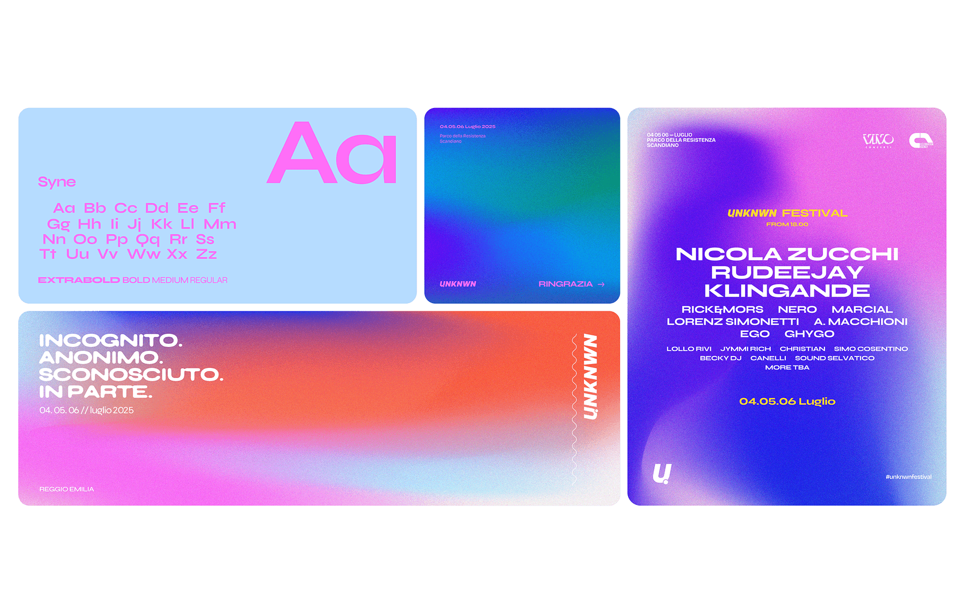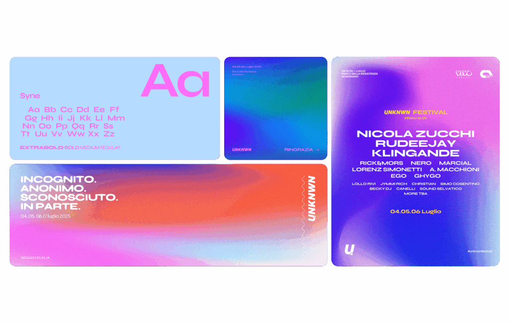 Sito vetrina con area sponsor, hosting, policy gdpr, automazioni, manutenzione Logo, brand identity, grandi formati, abbigliamento, bancarelle, video led wall, palchi, spazi espositivi e merchandising Strategia, piani editoriali, gestione campagne
